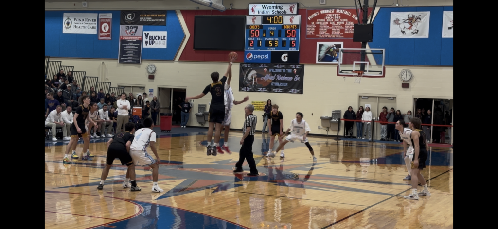 HeeyeiNiitou Monroe-Black, the hero of the evening, did score the first four Wyoming Indian points of the night, but didn’t score again until midway through the second. He scored on three fade-away jumpers over Thermopolis big-men to tide over the Chiefs.