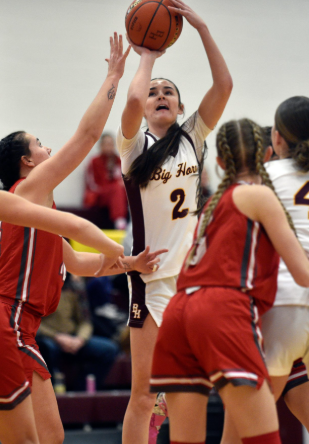 Earlier this season, we saw a few moments that stand out as highlights of the first half. Afton Cummins of Big Horn (2A #1) achieved a rare quadruple-double on Jan. 10th against Shoshoni – 24 points, 14 rebounds, 10 assists, and 10 steals. Cummins leads the front-running Rams in every statistical category, averaging a double-double through 13 games.